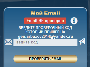 Для подтверждения введите код в форму и нажмите на кнопку "ПРОВЕРИТЬ EMAIL"