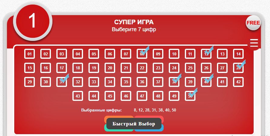 В LotoFreeBie шесть игр. Вы можете ежедневно заполнять по одному билету в каждой игре. В билетах Вам надо угадать шесть (семь в первой игре) чисел, которые будут розыгранны в тираже на следующий день.