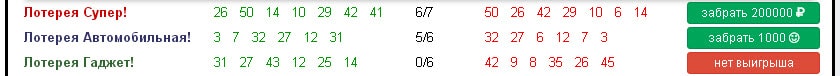 Розыгрыши тиражей проходят ежедневно в режиме реального времени (смотреть Здесь), а результаты розыгрыша (выигрышные числа) одинаковые для всех игроков. В играх lotofreebie большое количество игроков, а количество не выигрышных комбинаций конечно. Данные факты гарантируют честность и прозрачность розыгрышей и исключают любые махинации с выигрышными числами с нашей стороны.